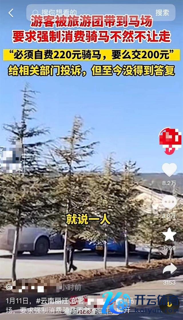近日,有旅客发视频称,在云南丽江旅游时,被旅行社带到拉市海云表马场后,强制条目蹧跶骑马,否则不让走。1月16日,极目新闻记者从丽江市委宣传部获悉,此事发生在1月7日,旅客报警后未产生用度,涉事的云南国番邦际旅游集团控股云南分公司等三家旅游公司涉嫌罪犯违法,丽江市文化和旅游局已对这三家旅游公司立案访谒。