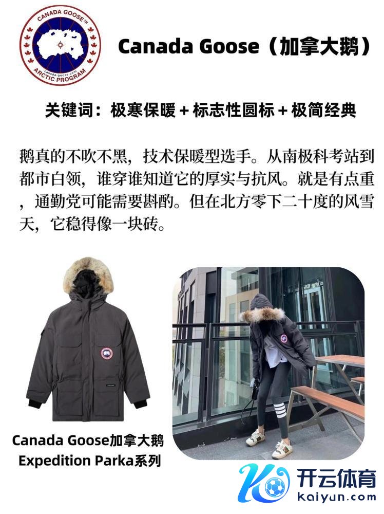被誉为“白袍子”的Canada Goose,以其超卓的御寒性能和高品性材料获得了环球消耗者的青睐。创立于1957年的Canada Goose,专注于为极寒地区臆测打算羽绒服,确保衣服者在冰雪杂乱的环境中也曾宽恕如春。高品性的鸭绒填充和防水外层材料,使其不仅具备出色的御寒着力,还能灵验抵抗恶劣天气。不管是北极探险如故城市通勤,Canada Goose皆是隆冬中弗成或缺的御寒利器。