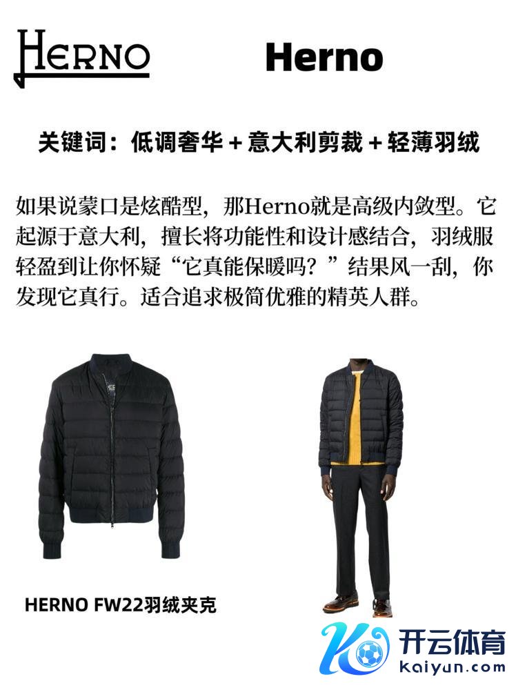 Herno,这个意大利品牌以其专有的臆测打算理念和超卓的工艺著称。自1948年缔造以来,Herno恒久坚抓低调的糜费,通过优雅别致的臆测打算将羽绒服普及到艺术的高度。Herno接管先进的“Herno”材质,赋予外衣出色的防水和透气性能,确保在严冷天气中也曾自得宽恕。品牌正式细节和剪裁,每一件羽绒服皆是意大利工匠精神的结晶,深受追求高品性生计东谈主士的喜爱。