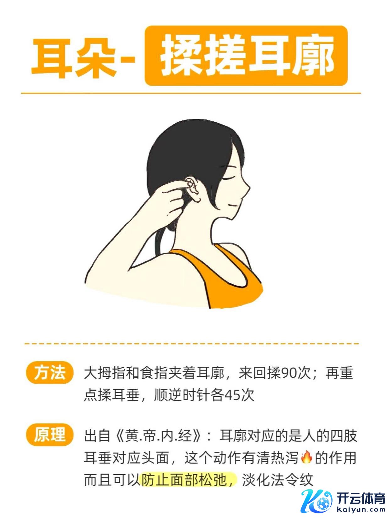 耳朵------揉搓耳廓 范例:大拇指和食指夹着耳廓,往复揉90次;再重心揉耳垂,顺逆时针各45次 出自《黄帝内经》:这个手脚有清热泻huo的作用,况且不错预防面部温情,淡化司法纹 .