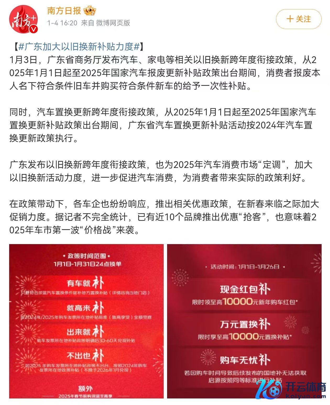现在,依然有多个省市告示延续2024年“以旧换新”政策,不时饱读吹汽车破费。1月3日,广东省商务厅发布汽车报废更新跨年度衔尾政策,明确提倡从2025年1月1日起至2025年国度汽车报废更新补贴政策出台时间,破费者报废本东谈主名下相宜条目旧车并购买相宜条目新车的予以一次性补贴。